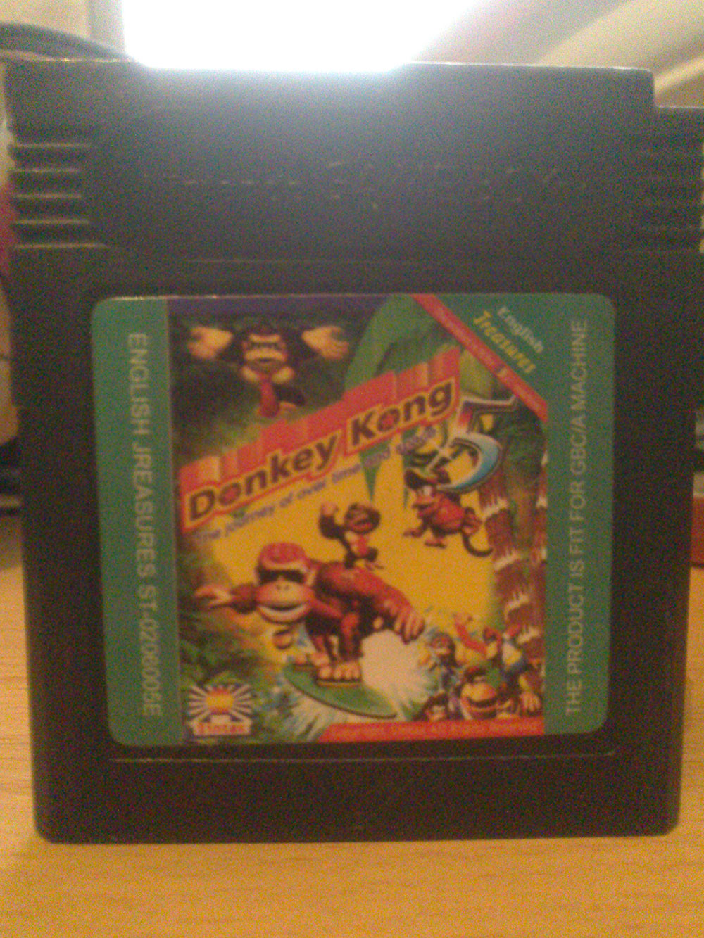 Like you'd expect, official DK renders are slapped all over the cartridge label. A label says in Engrish "The product is fit for GBC machine" (expect Engrish in the game too). Renders include one of Funky Kong, a group art of the DK64 playable Kongs, render of DK and Diddy from DKC, and a Melee render of DK. All of the current said information suggests that the game was made after 2001 (definitely after 2000).
