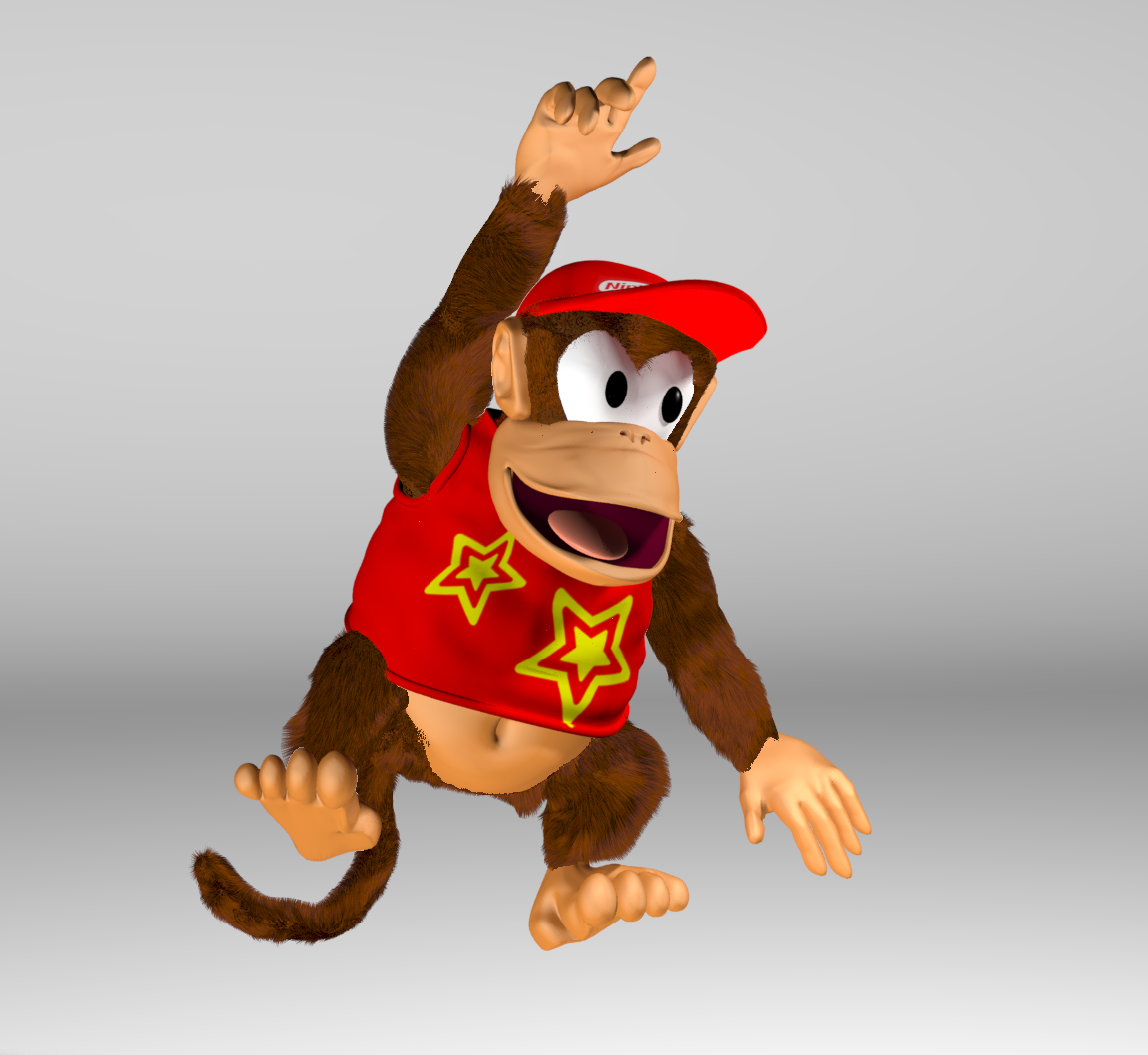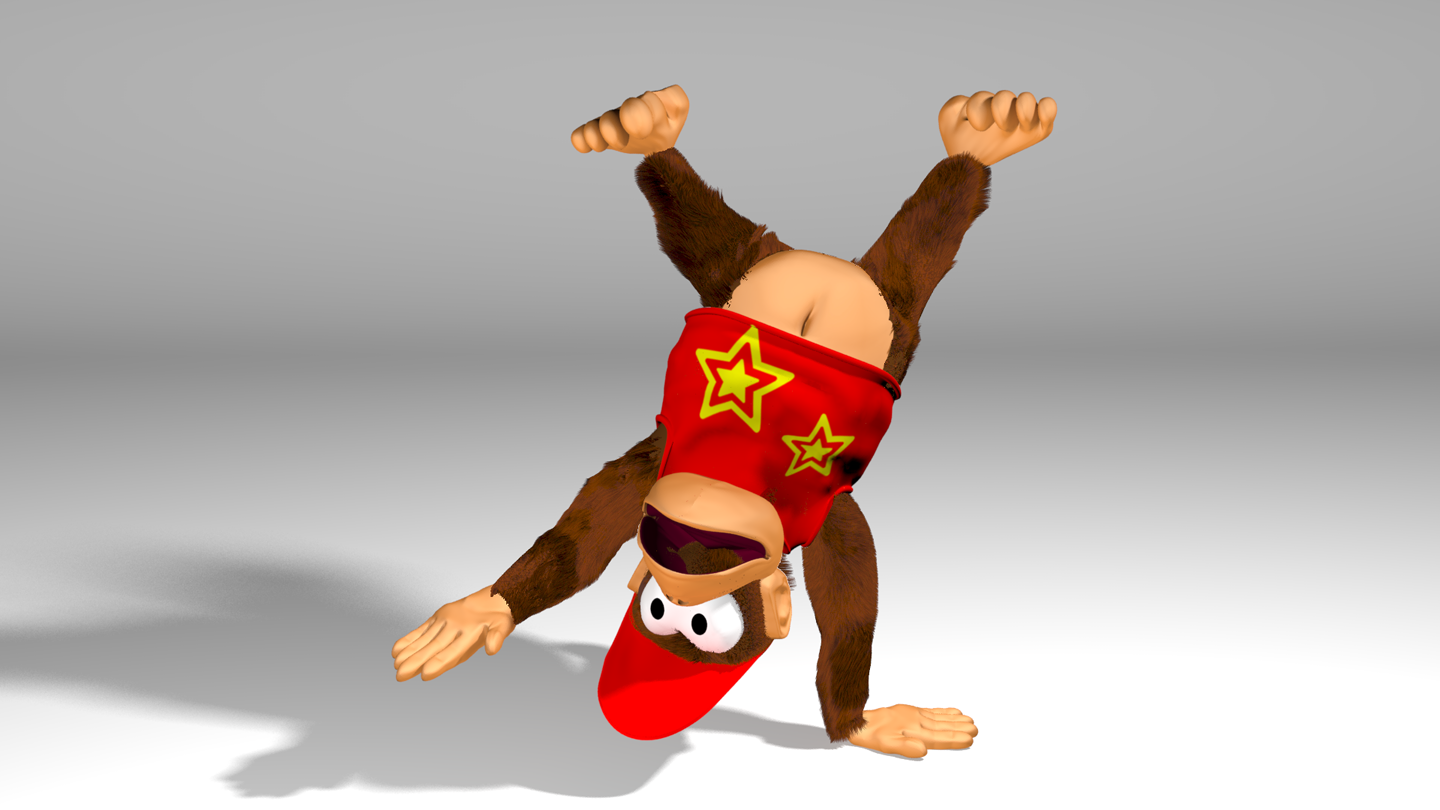 Animation is obviously a very challenging task; it's one thing to be able to model, pose and render (actually it's three things — or many more, depending how you look at it :P), but constructing a convincing animation for as complex a model as Diddy (who basically has five separate limbs, if you count his tail) is another discipline entirely.