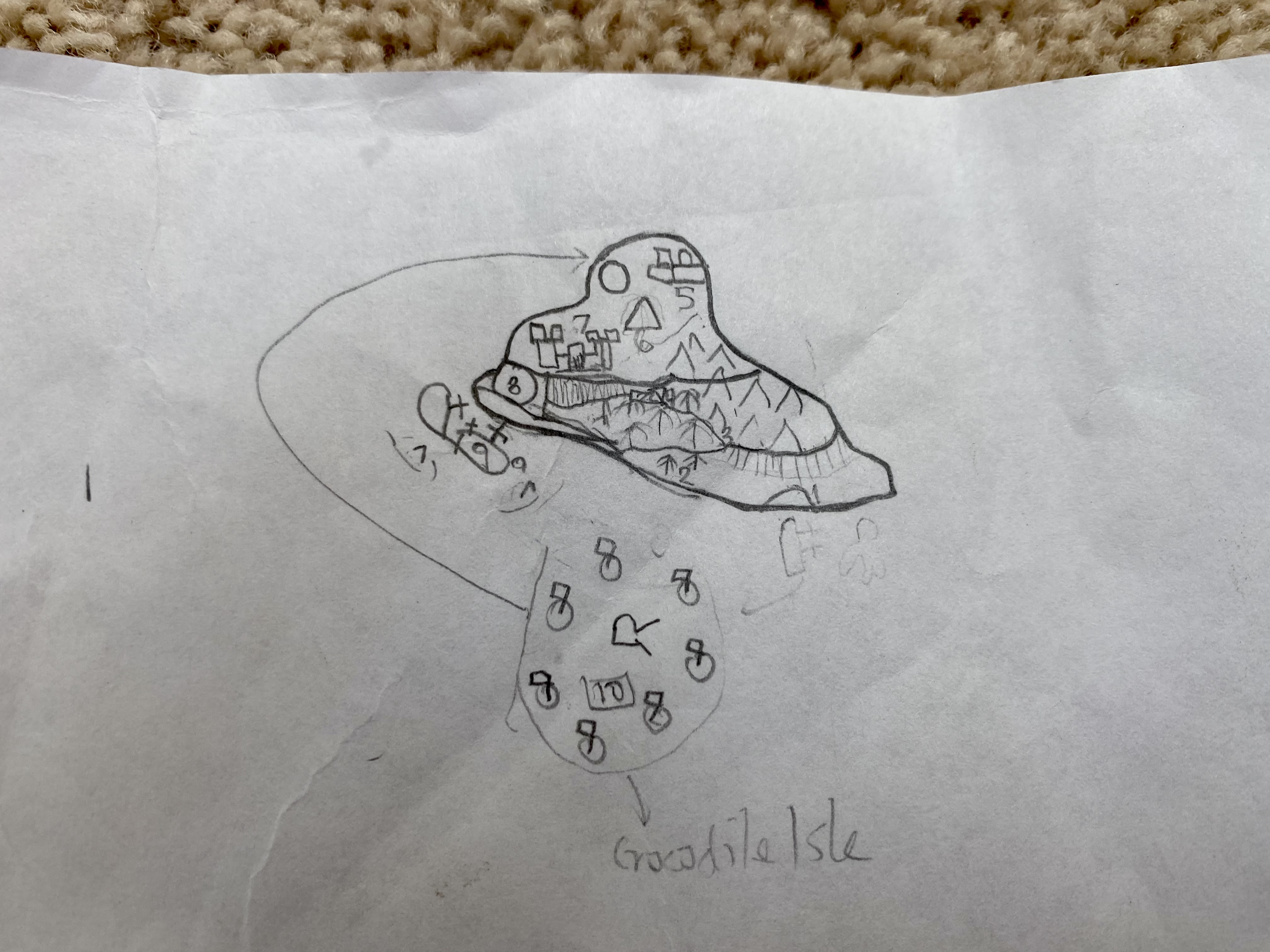 I do have a rough sketch of the world map which takes place on the other side of DK Island.