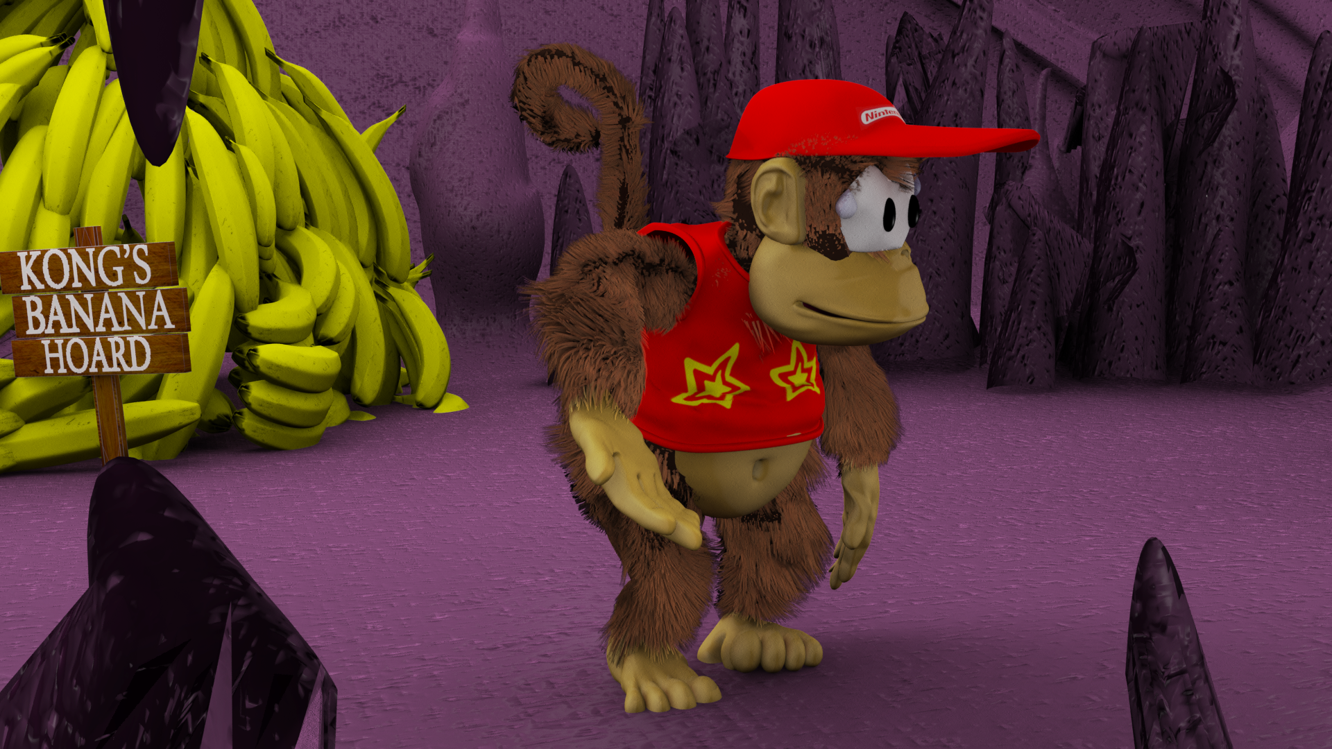 Diddy's fur still looks a bit pale/light, though; a darker brown (perhaps quite like the darkest parts of his fur) would suit him a lot better.