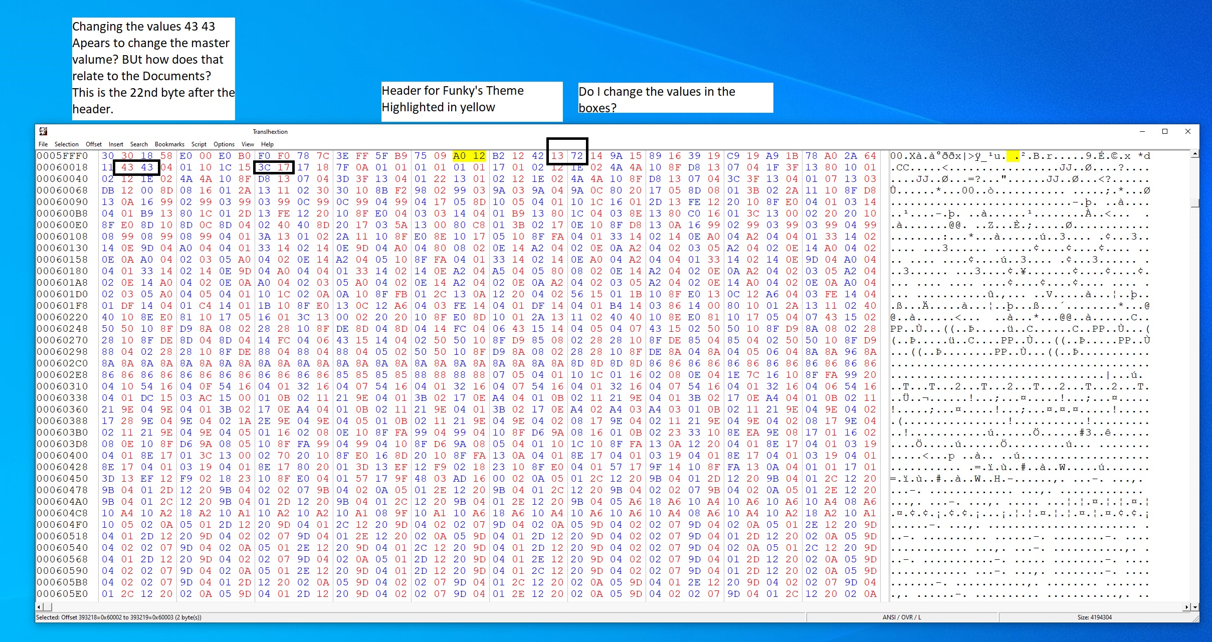 Also, your image is VERY painful to look at. I believe I mentioned always putting hex viewers at 16 or 32 bytes per line. This makes it easier to jump a certain amount of bytes, as those numbers are regular with how addressing works. Hex is base 16. Kingizor can no doubt explain this point better :)